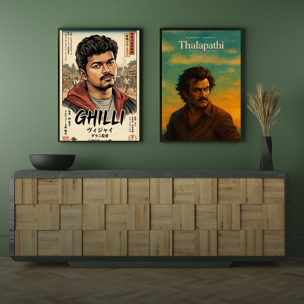 Iconic Tamil cinema posters… so good even your amma approves when she comes to clean your room 👀